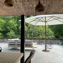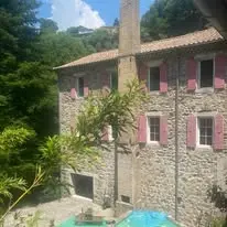 LA MAISON HÉLICE, ancien moulinage de soie réhabilité en gite depuis 1995, se situe en bord de rivière et à quelques minutes à pied du village “de caractère” Antraigues-sur Volane. La Maison Hélice, ancien moulinage de soie réhabilité en gîte depuis 1995, se situe en bord de rivière et à quelques minutes à pied du village de caractère d’Antraigues-sur-Volane. Nous aurons accès à tous les espaces extérieurs ainsi qu’à une grande salle de répétition.